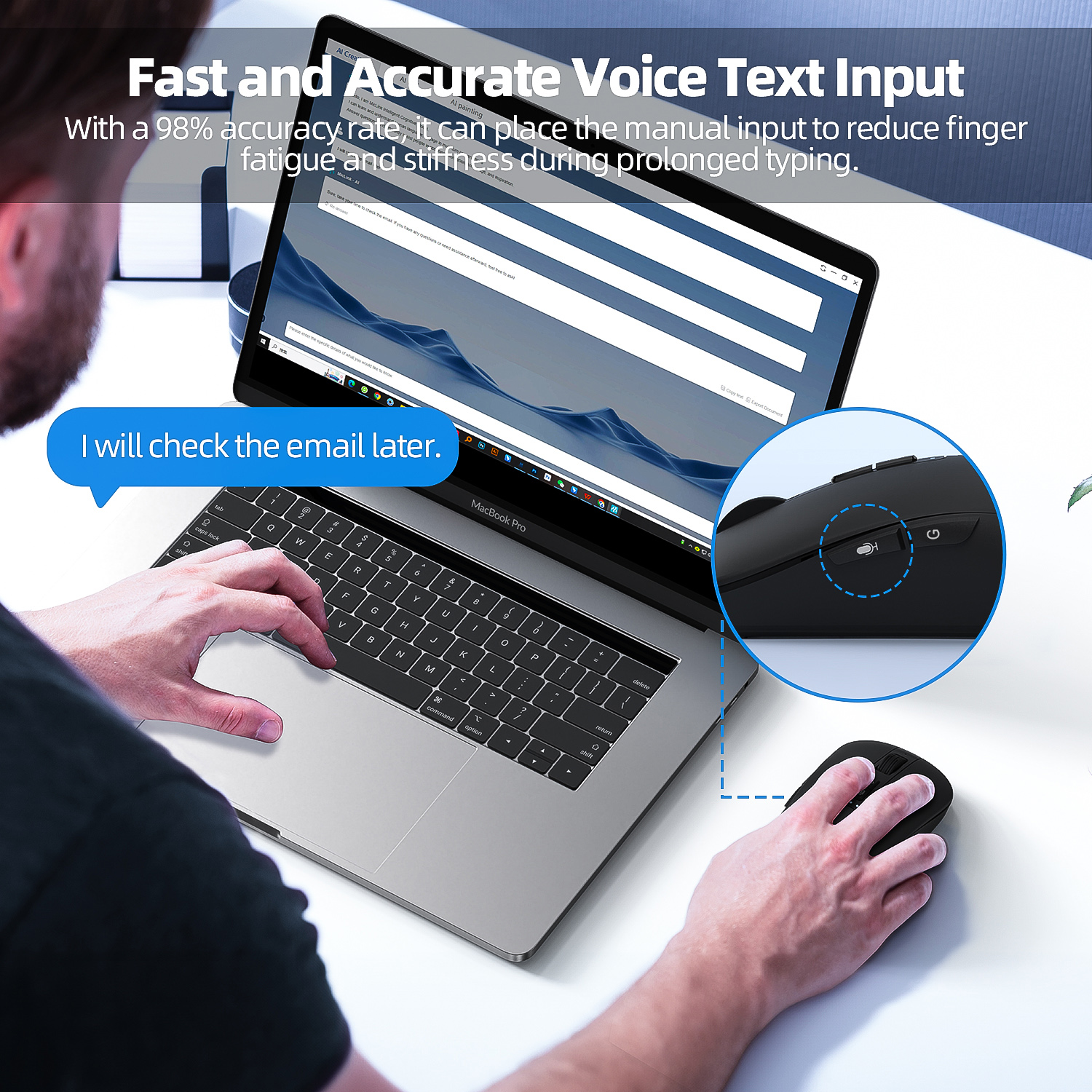 AI Smart Voice Mouse Speech to Text Mouse Rechargeable 2.4G Wireless Bluetooth Mouse for Windows Laptop Voice Typing Mouse