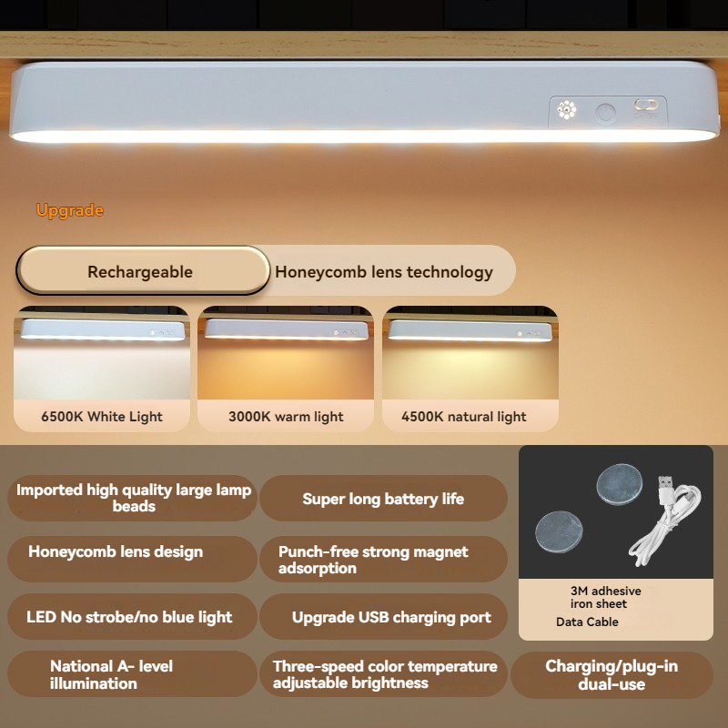 Magnetic Clip-On/Stick Lamp with USB Rechargeable Battery, Desk & Bedside Light for Dorm Room Study