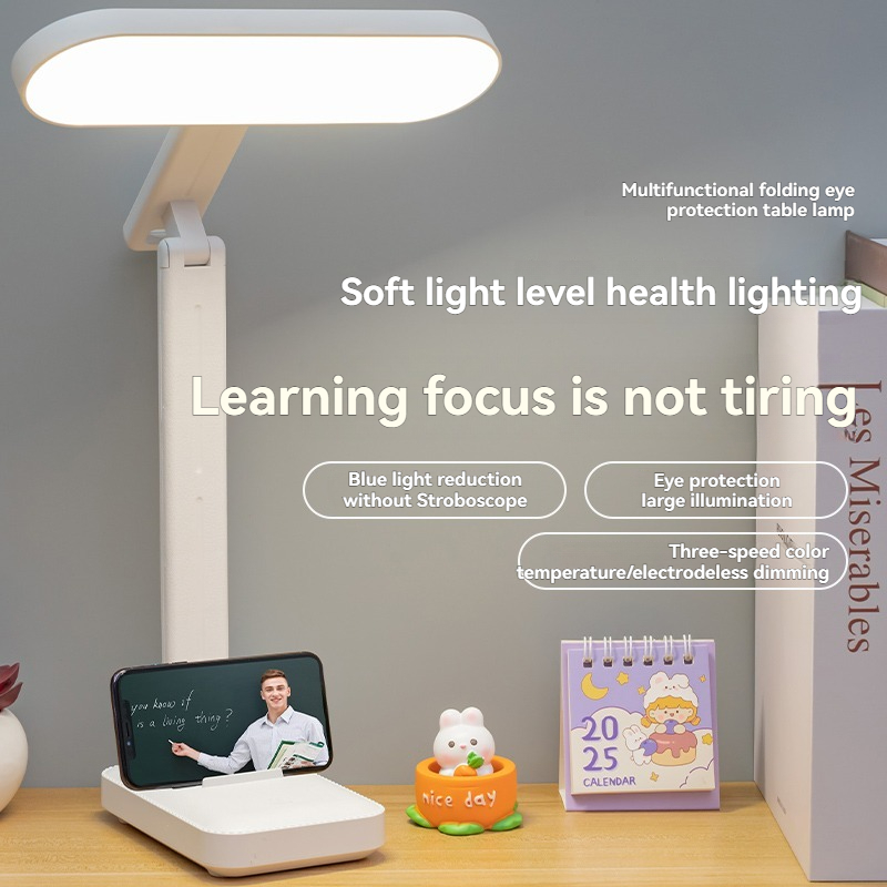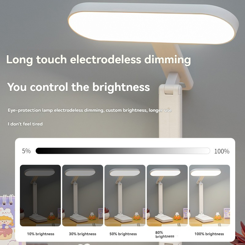 Rechargeable Foldableing Eye Protection Desk Lamp for Study, Special Dormitory Desk Reading Lamp, USB Rechargeable and Plug-In Dual-Use Dimming Home Desk Lamp