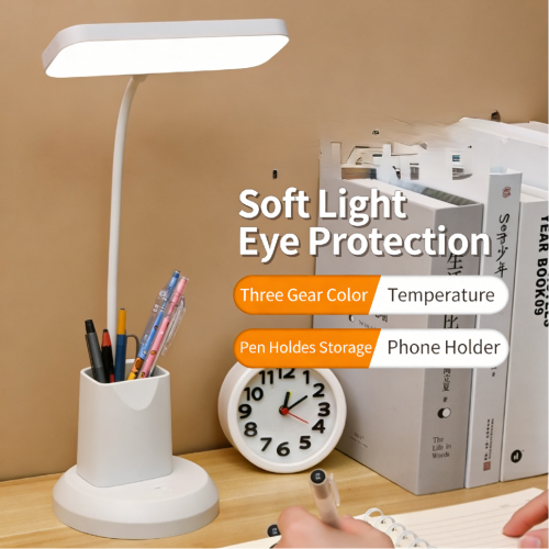 A dimmable LED desk lamp with adjustable color temperature and bendable lamp tube – touch reading lamp with lampshade