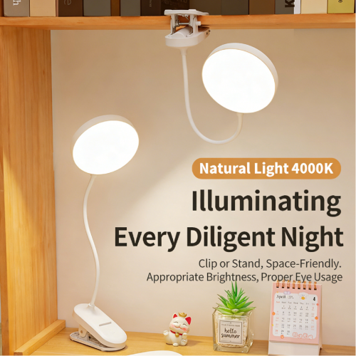 Magnetic Clip-On/Stick Lamp with USB Rechargeable Battery, Desk & Bedside Light for Dorm Room Study